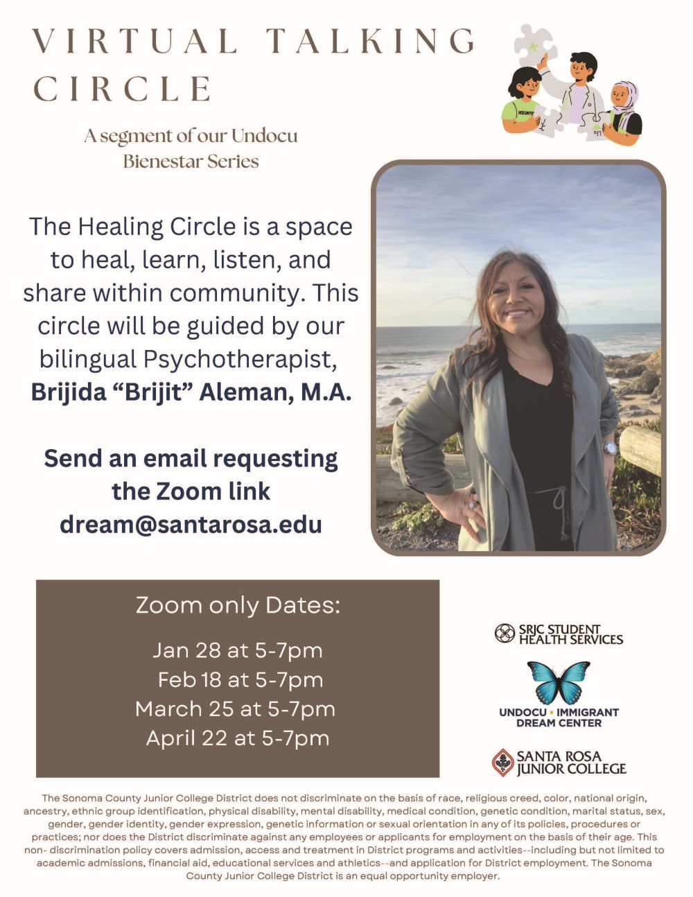 Healing Circle for students led by bilingual Psychotherapist, Brijida “Brijit” Aleman, M.A.